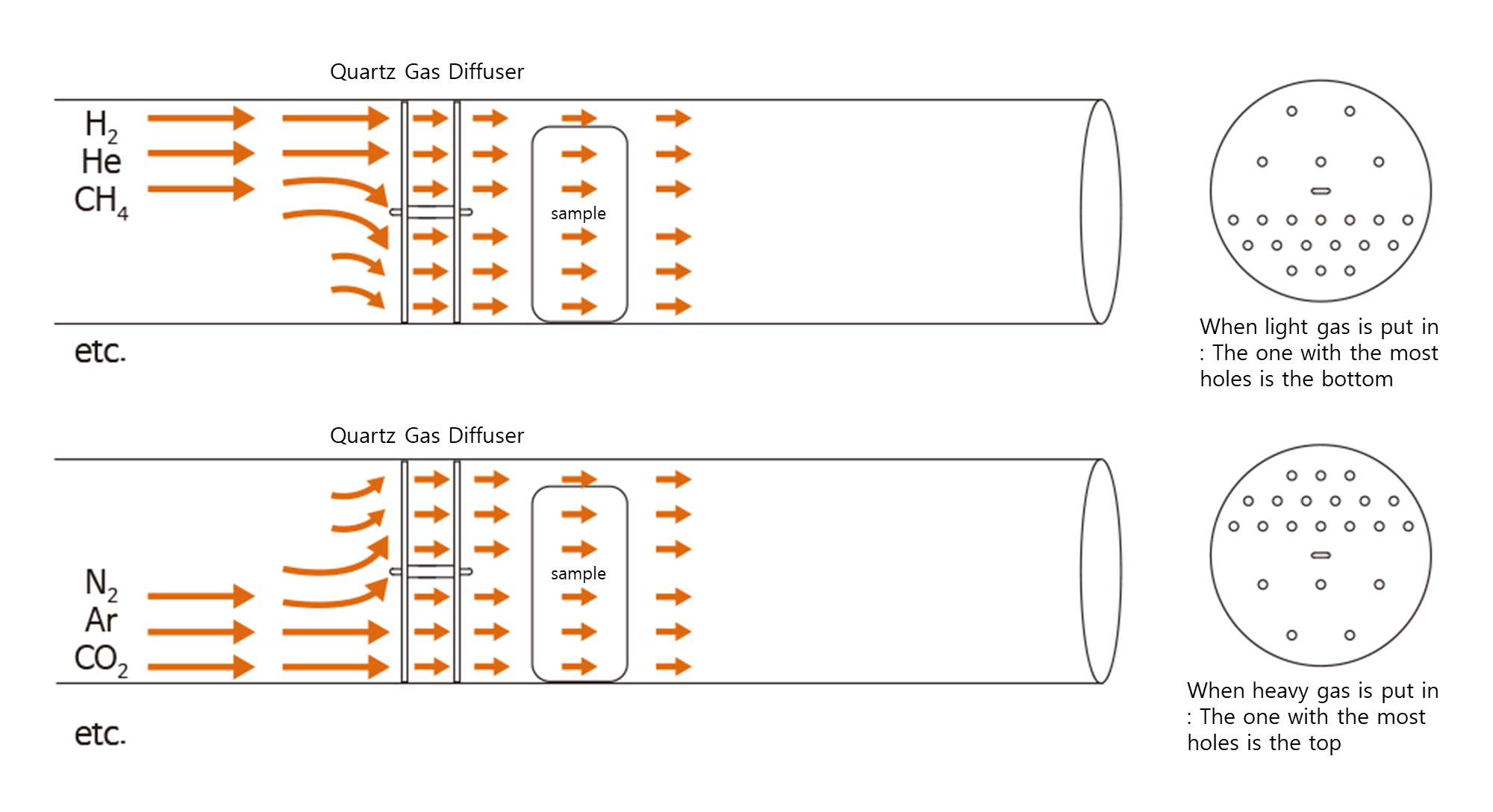 · Distributing gas flow inside the tube during CVD, annealing, and sintering processes