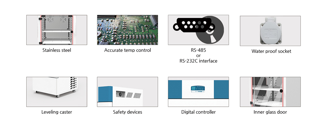 • This version of incubator comes with a high-powered refrigeration compressor. Its cooling temperature ranges from -5ºC to 60ºC. It is designed to conduct separated tests in high or low temperature. It is also capable of minimizing adjustment period from low to high or vice versa.