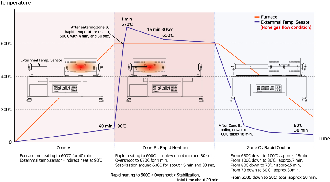 • Programmable Preheating Stage – Flexible configuration of the preheating zone to establish the desired atmosphere before the rapid heating process.