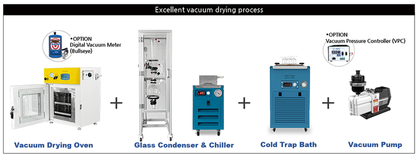 Therefore, when moisture or organic solvents are expected to evaporate during vacuum processes, a vapor condensation system must be installed between the vacuum oven chamber and the vacuum pump.
