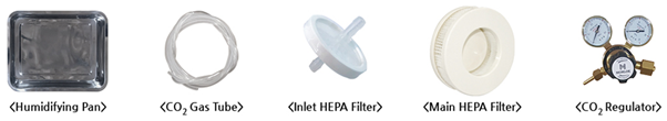 - Inlet HEPA Filter x1, Main HEPA Filter x1, CO2 Regulator x1