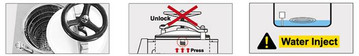 - Safety door opening mechanism assures user's safety as the door remains locked as long as there is excess residual pressure in the chamber