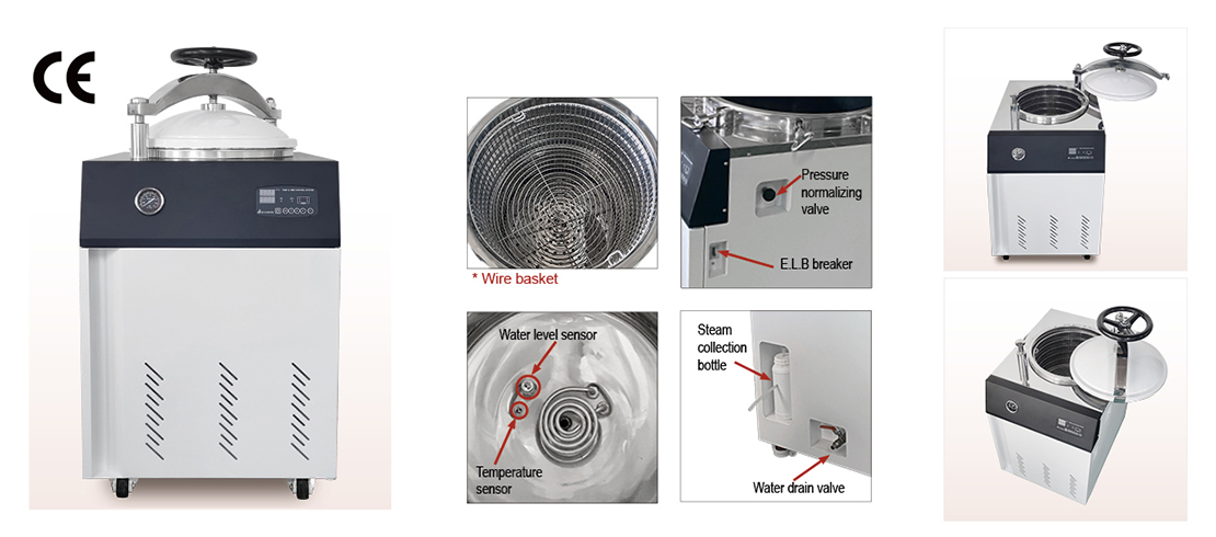 Vertical autoclaves (or steam sterilizer) have been widely used in biomedical research such as microbiology and mycology as well as medical and chemical sterilization. Typical loads include laboratory glassware, other equipment and waste, surgical instruments and medical waste and subject them to pressurized saturated steam at 121°C (250°F).