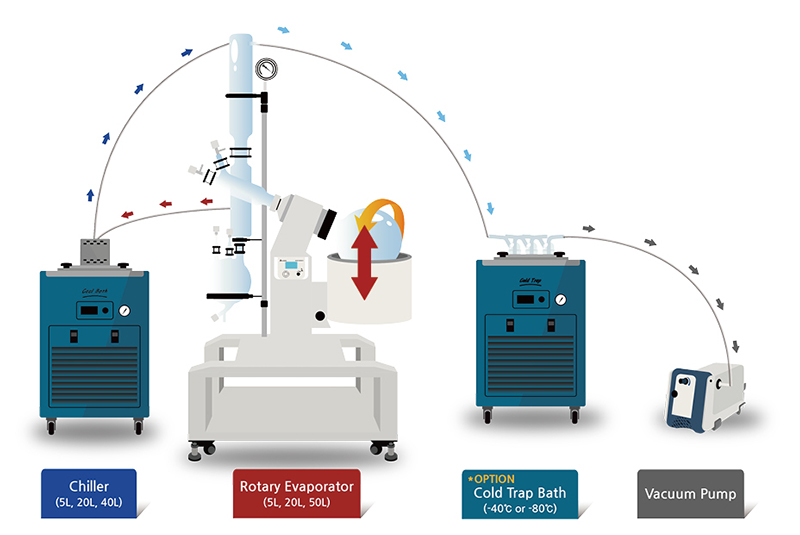 • Bundled with -30°C recirculating chiller, -40°C cold trap bath and Welch oil free diaphragm vacuum pump