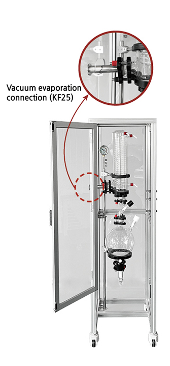 • Using a valve connected between the condenser and the receiving flask, condensate drainage is possible without vacuum release
